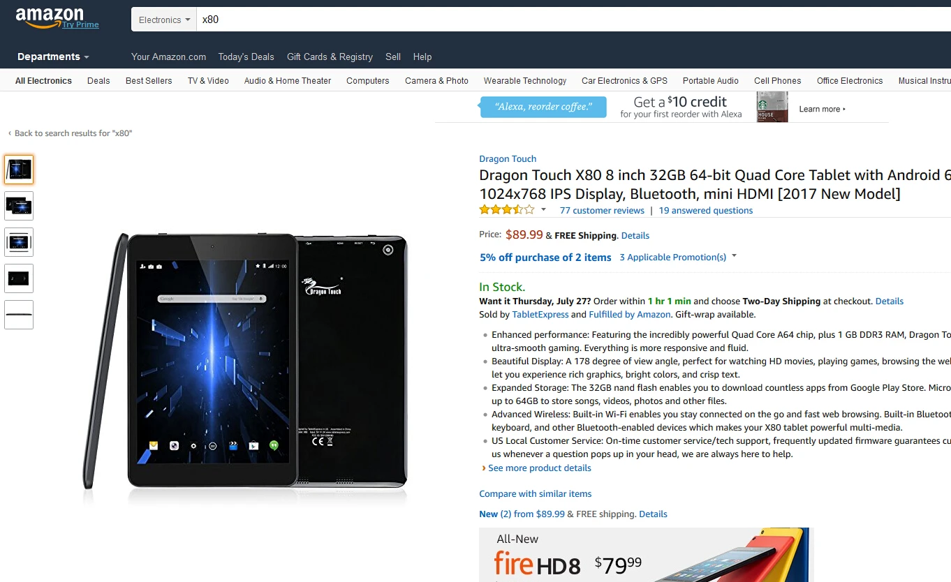 2017 Новый Dragon Touch X80 8 дюймов 32 Гб четырехъядерный планшет с Android 6,0 Marshmallow, 1024x768 ips дисплей, Bluetooth, mini HDMI