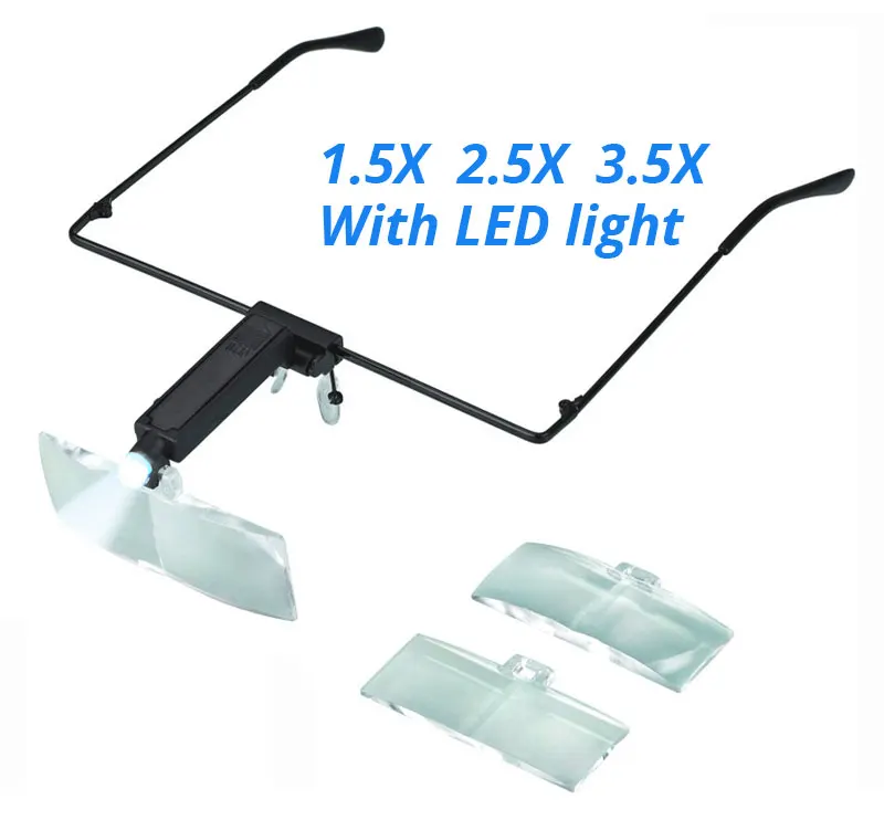 1.5X 2.5X 3.5X увеличительное стекло со светодиодной лампой и тремя линзами