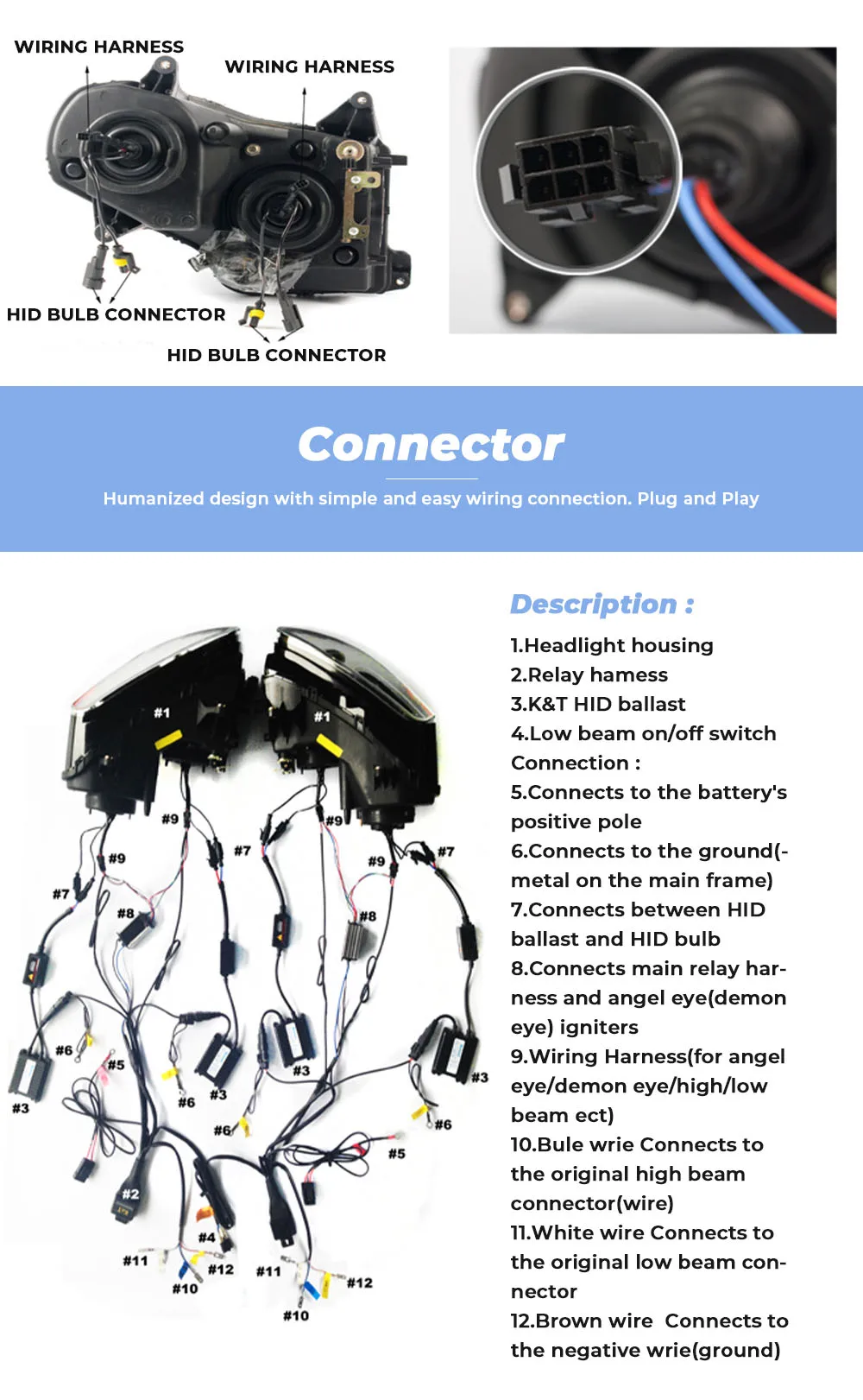 KEMiMOTO HID Angel Eye для Yamaha YZF-R25 R3 Angel CCFL Demon Eye HID проектор фара + воспламенитель синий/красный