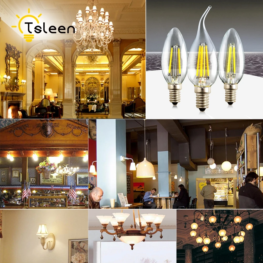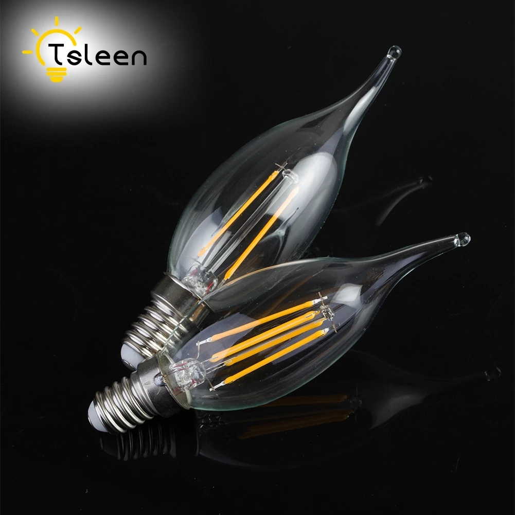 TSLEEN 10 шт./лот Ретро винтажная COB Светодиодная лампа Эдисона E14 лампа накаливания 220 В стеклянная лампа 4 Вт 8 Вт лампада Светодиодная свеча пламенная лампа