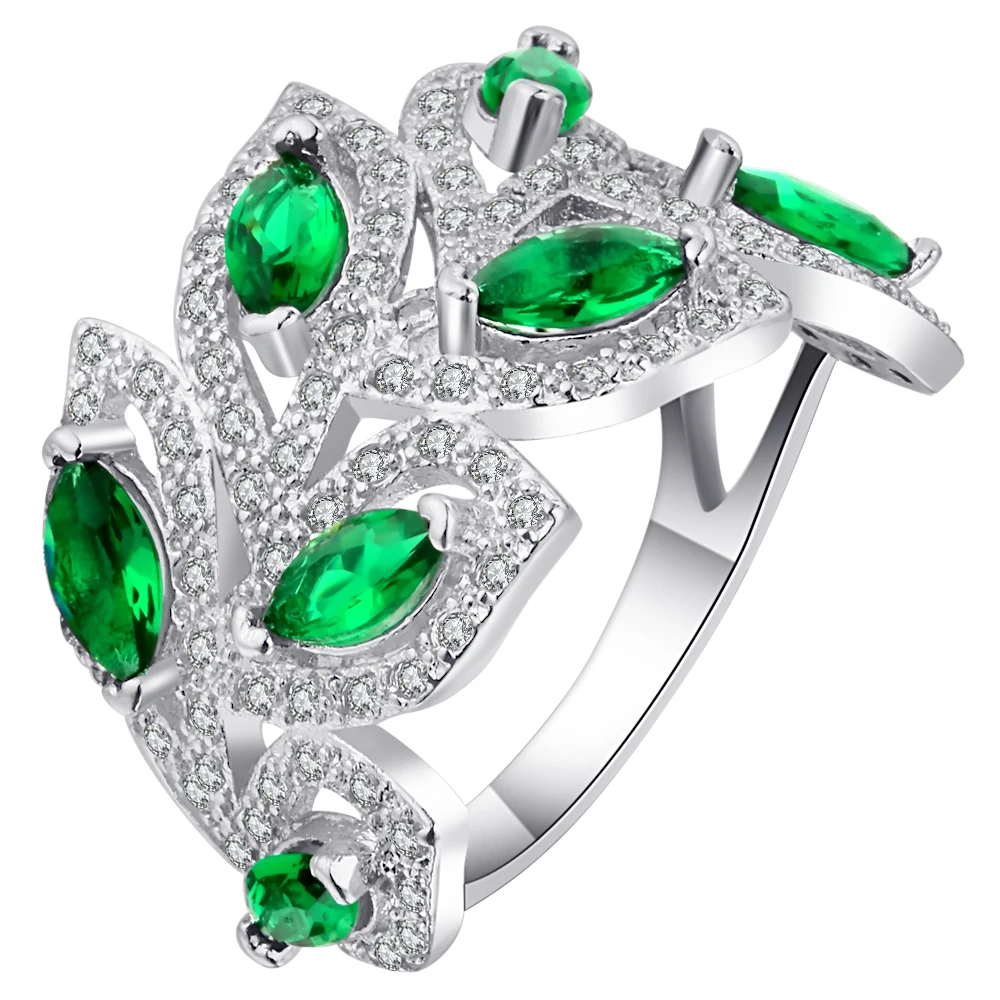 Женское кольцо с австрийскими кристаллами Bijoux Green, Серебряное элегантное круглое кольцо на палец с растением, уникальное ювелирное изделие