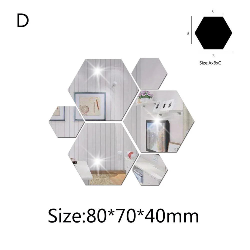 7 шт 3D зеркало шестиугольник винил, съемная Наклейка на стену Наклейка домашний декор искусство сделай сам