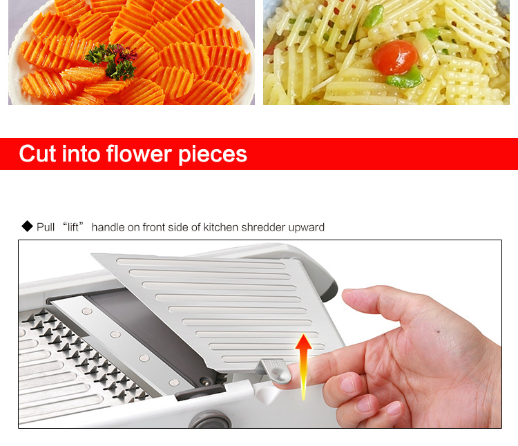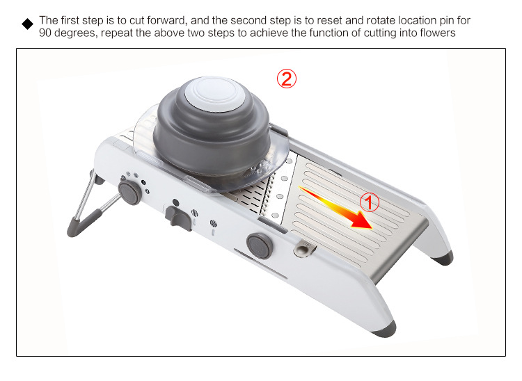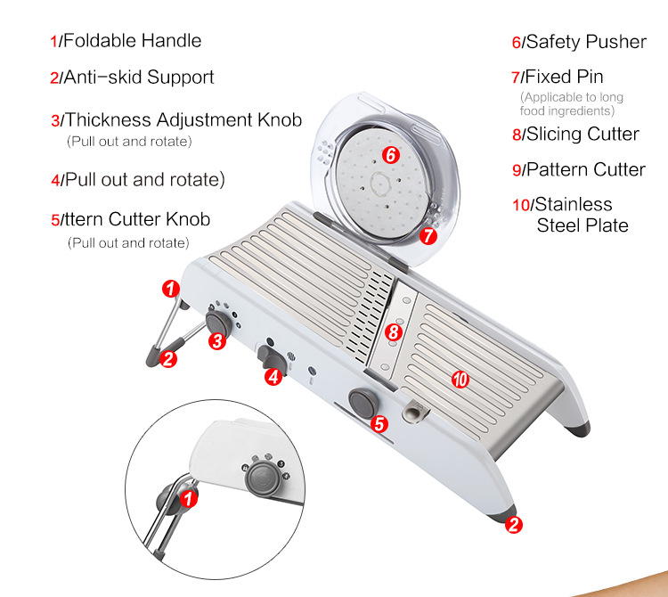 Прочность, простота и безопасность вдохновили дизайн нашей профессиональной мандолина. Наш профессиональный мандолин, от изысканных зерен до деликатной набивной моркови, необходим на кухне. Этот мандолин имеет рукоятку регулировки лезвия для бесшовной смены между встроенным нарезным лезвием и вафельными лезвиями, устраняя свободные лезвия или детали. С быстрым поворотом запястья, вы можете создать вафельные разрезы, чтобы произвести впечатление на любого гостя.