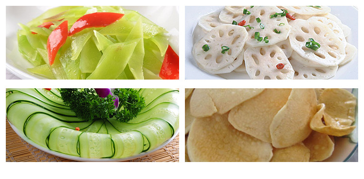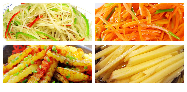 Варианты нарезки ломтиков, Жульен и вафель, четыре толщины нарезки