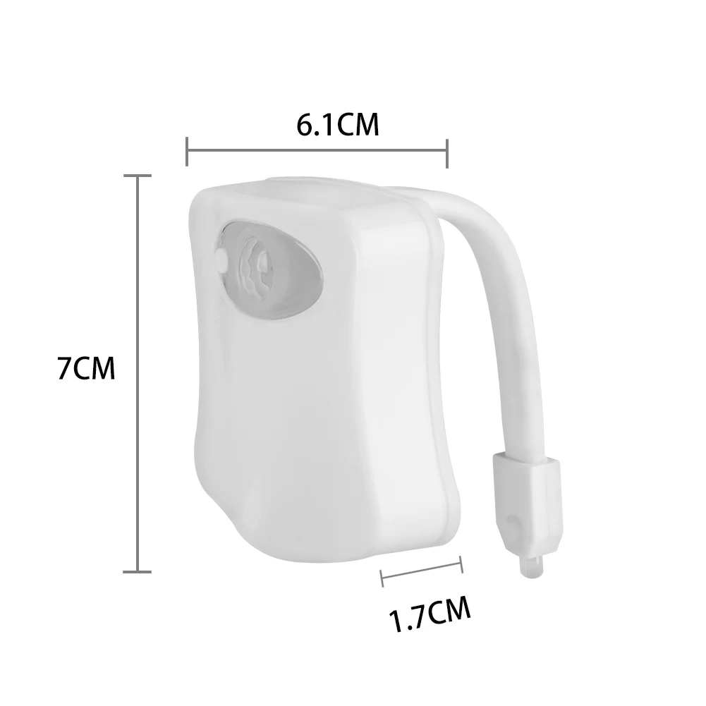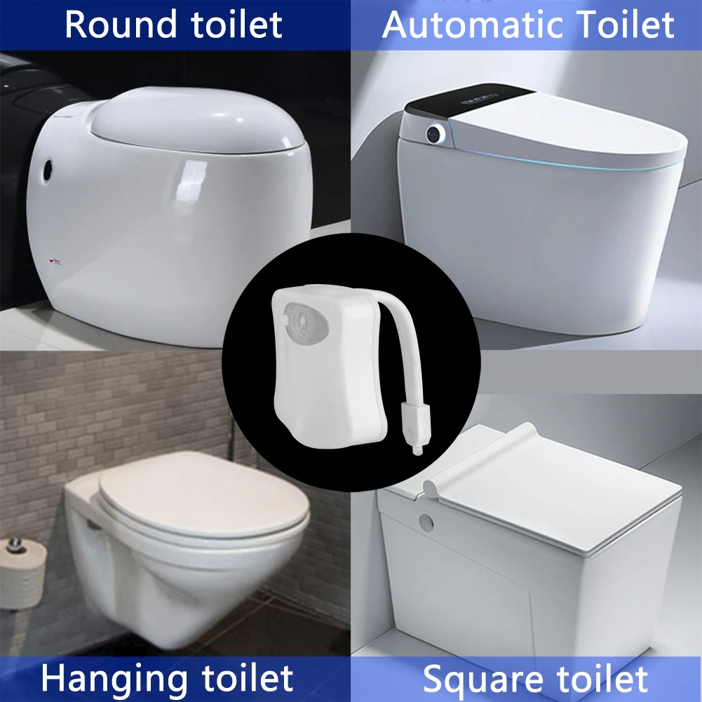 This is a motion-activated nightlight which is specially designed for the toilet in darkness, which means it automatically illuminates the inner bowl of any toilets only in the darkness once you are close to the range about 2-3 meters of your toilet. It fits on the rim of any toilets . No more missing your target or stumbling around the bathroom in the dark. Pressing the button, you can change the lighting colors.