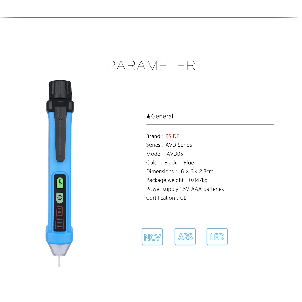 Диапазон напряжения переменного тока: 12 В ~ 1000 В (ручной режим); 48 В ~ 1000 В (автоматический режим) Частота: 50 Гц/60 Гц Мощность: 2*1,5 V элемент питания AAА (в комплект не входит) Размер: 174 мм * 47 мм * 35 мм Вес: 68 г 1. Внешний вид проходит через предыдущие ограничения. Передняя часть фюзеляжа изготовлена из полупрозрачного акрилового материала, даже встроенные скрытые светодиодные лампы могут сиять в вашей руке. Задняя часть фюзеляжа изготовлена из высококачественного АБС-изоляционного материала, который является более безопасным и прочным. 2. Чип обновлен, и чувствительность теста значительно увеличивается, помогая вам более точно определить целевой кабель, чтобы быстро решить проблему вашей операции. 3. Более удобный эргономичный дизайн, все в ваших руках. Поверхность AVD07 занимает все с первого взгляда, и операция чрезвычайно проста. Посылка включает в себя: 1 * AVD07 умный детектор напряжения 1 * нейлоновый ремешок 1 * Руководство пользователя