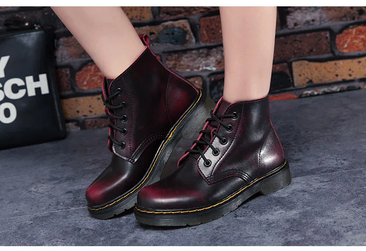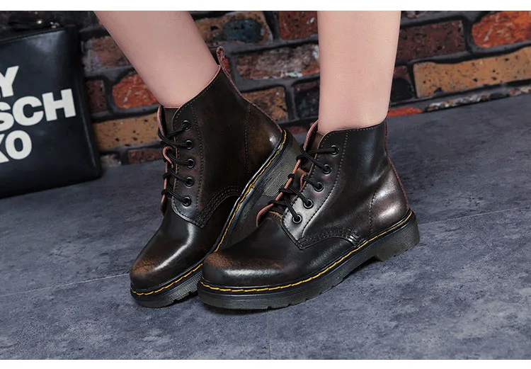 Ботинки из натуральной кожи; женские зимние ботинки; ботильоны на меху; Botas Mujer; ботинки на плоской платформе в стиле панк; Осенняя женская кожаная обувь; большие размеры 44