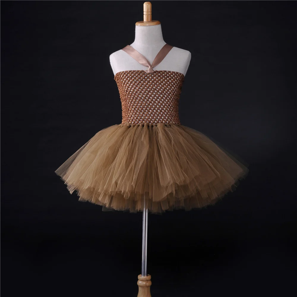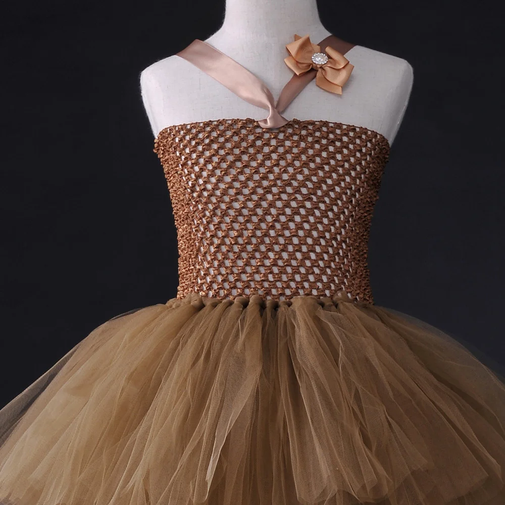 Brown Baby Girl Flower Tutu Dress Handmade Fluffy Children Birthday Party Dance Ball Gown Dress for Girls Kids Halloween Costume