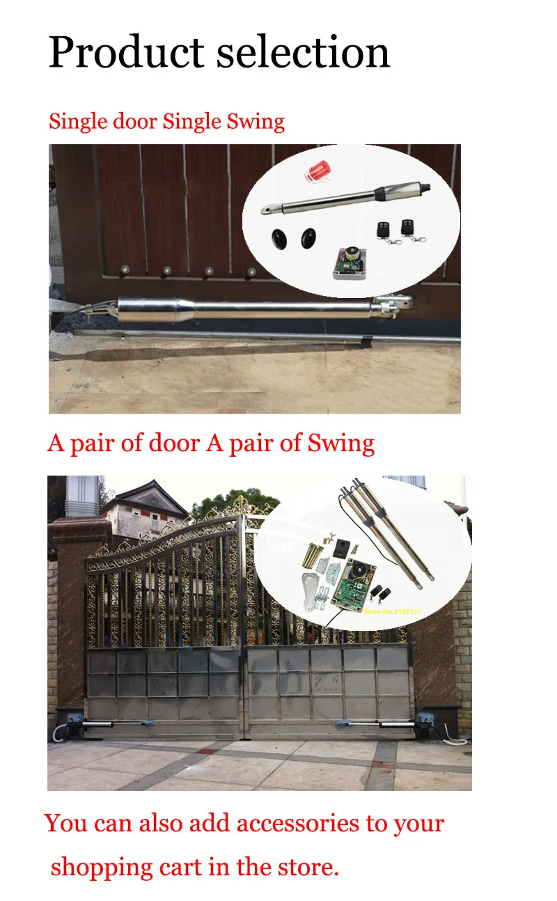 Двойной поворотный ворот предназначен для жилых/коммерческих целей. Оставайтесь теплыми и сухими в вашем автомобиле. Этот открывание двойных распашных ворот справится с двойной распашные ворота до 5 метров (2,5 метров каждого листа) в длину и весом до 300KGS.(150 кг на лист) Открывалка для распашных ворот PKM-101 имеет мощные двигатели 24 В постоянного тока, которые обеспечивают исключительный пусковой момент и функции мягкого запуска/остановки. Это обеспечивает более длительный срок службы ворот и оператора, а также надежную производительность. Все ворота открывалки поставляются предварительно протестированы и хорошего качества долговечны и имеют 12 месяцев назад к базовой гарантии на полную систему. Эта система открытия поворотных ворот с двумя рукоятками является надежной, долговечной, двигатель может отрегулировать ворота на светильник. Операторы поворотных ворот PKM-101-это изящный Телескопический линейный винтовой привод, изготовленный из нержавеющей стали с корпусом мотора из литого сплава. Два двигателя изготовлены из металла (без пластика, волокна или нейлона). PKM-101 открывалка для распашных ворот оснащена аварийным ручным управлением на каждом приводе, чтобы позволить пользователю открыть ворота вручную в чехол чрезвычайной ситуации, такой как ситуация сбоя питания. Полный комплект: 2 x двигатель постоянного тока с предварительно проводным кабелем 2 гаечных ключа 2 пульта дистанционного управления 1 x Панель управления 2 x крепежный кронштейн 2 x кронштейн для крепления ворот 1 x резиновая задвижка Руководство по эксплуатации-1 шт. Выберите подходящую посылка в соответствии с вашими потребностями. Содержимое включено на изображении выше 1. Простота установки и эксплуатации и простота подключения к проводу. 2. Откройте и закройте ворота с помощью пульта дистанционного управления и клавиатуры. 3. Функция стимуляции времени. Когда открываете ворота, скорость медленная, затем немного быстрая, и когда закрываете дверь, скорость снова медленная. 4. В чехол сбоя питания, отпустите сцепления легко, и может работать в ворота вручную. 5. Срок службы около 15 лет. 7. Прекратите работать, когда ворота встречают препятствия. 8. Максимальная ширина стержня составляет 300 мм. 9. Порошка двигателя: 24VDC 40W 10. Бег Скорость: 1,6 см/с Преимущества управления операторами поворотных ворот: 1. Контроллер может подключать мигающий светильник и фотоэлемент, а также резервную батарею, солнечную систему и клавиатуру и так далее. 2. Управление одним или dluble-leaf двигателем является необязательным. 3. Можно регулировать время открытия и закрытия двери. 4.24VDC резервный аккумулятор может быть вход. (Это использовать большой контроллер, наш стандартный контроллер маленький размер.) 5. Высокая скорость работы может регулироваться. 6. Установить дополнительный пульт дистанционного управления легко, до 30 шт. пульт дистанционного управления