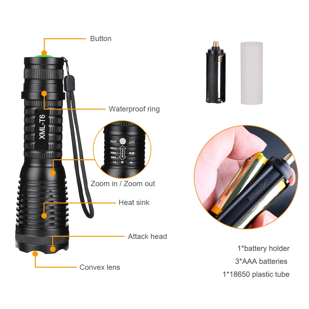Высокая яркость 3800 люмен Cree XM-L T6 светодиодный тактический фонарь 5-режим Масштабируемые Linternas светодиодный фонарь Фонари 1*18650 или 3 * AAA