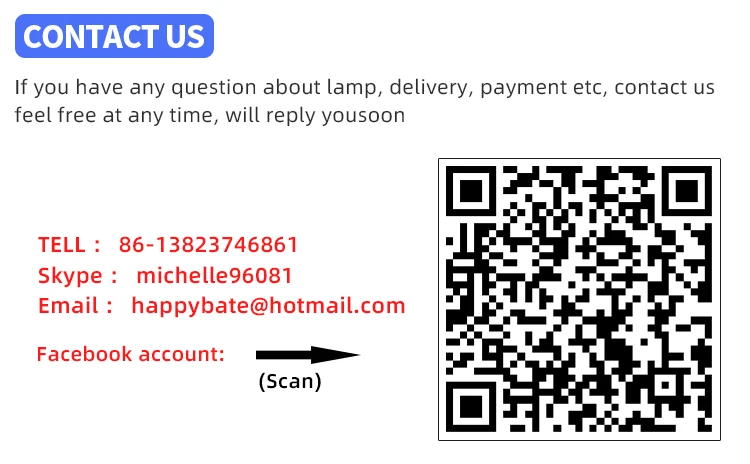 Все наши прожекторные лампы прошли строгую проверку качества на характеристики луча, соединения, напряжения и время работы, так что вы можете доверять ему работать безупречно в вашей проекции. Кроме того, мы предоставим гарантию на 180 дней после обслуживания, если у вас есть какие-либо технические, поврежденные или другие проблемы, пожалуйста, свяжитесь с нами как можно скорее, мы сделаем все возможное, чтобы помочь вам.