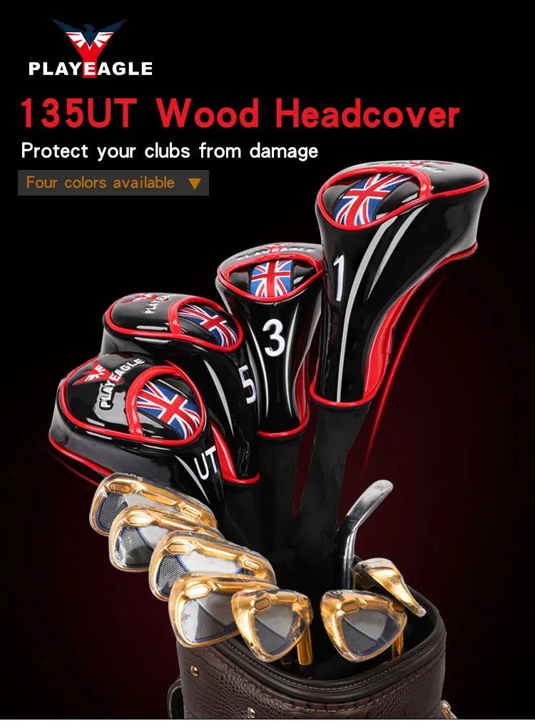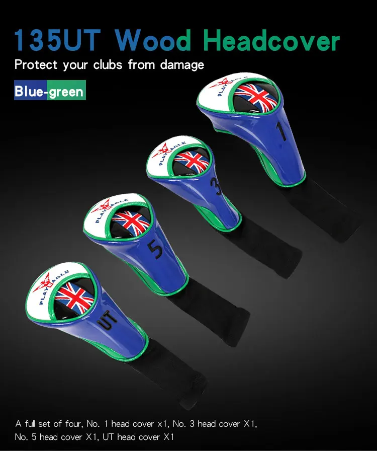 Информация Особенность: это хорошо, чтобы защитить ваш гольф-клуб. Прочный, не легко пачкается Цвет: синий + черный, черный + красный, синий + зеленый, синий + красный Материал: из искусственной кожи Посылка: 1 комплект х чехол для головы из дерева для гольфа 1 комплект = 4 шт. (1-3-5-7-ut)