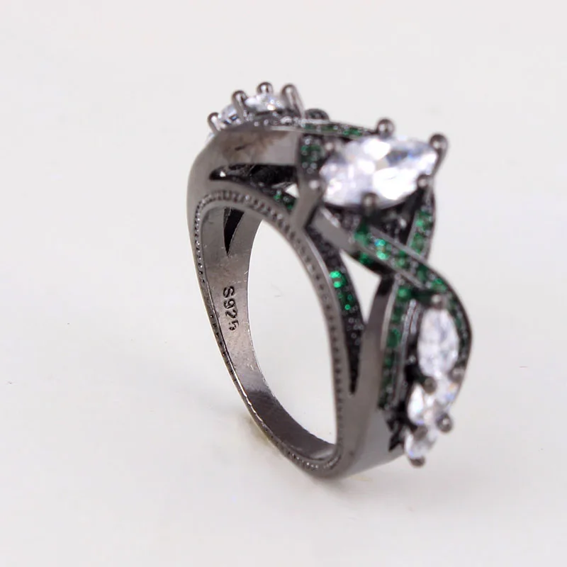 New Trendy White And Green Cubic Zirconia Water Drop Black Ring Unusual Micro Pave Wedding And Engagement Ring For Women Jewelry