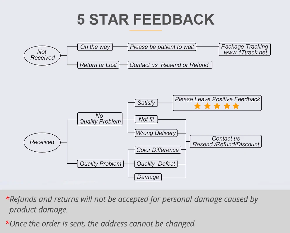 Возврат или возврат по вашему желанию, если вы не удовлетворены нашей продукцией, пожалуйста, свяжитесь с нашим клиентом servier свободно, мы исправим проблему для вас и дадим вам удовлетворенный ответ