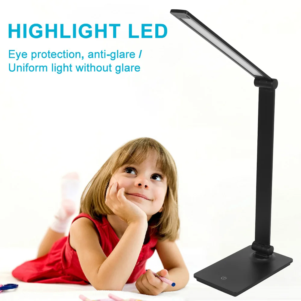 Светильник для чтения с регулируемой яркостью Складной поворотный сенсорный переключатель защита глаз светодиодный настольный светильник DC5V USB порт зарядки рядом с ночным светильник
