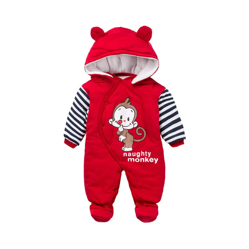 Одежда для новорожденных девочек зимние утепленные хлопковые комбинезоны с капюшоном и длинными рукавами для малышей, Bebe, комбинезон для прогулок на открытом воздухе, Комбинезоны для детей 3-24 месяцев