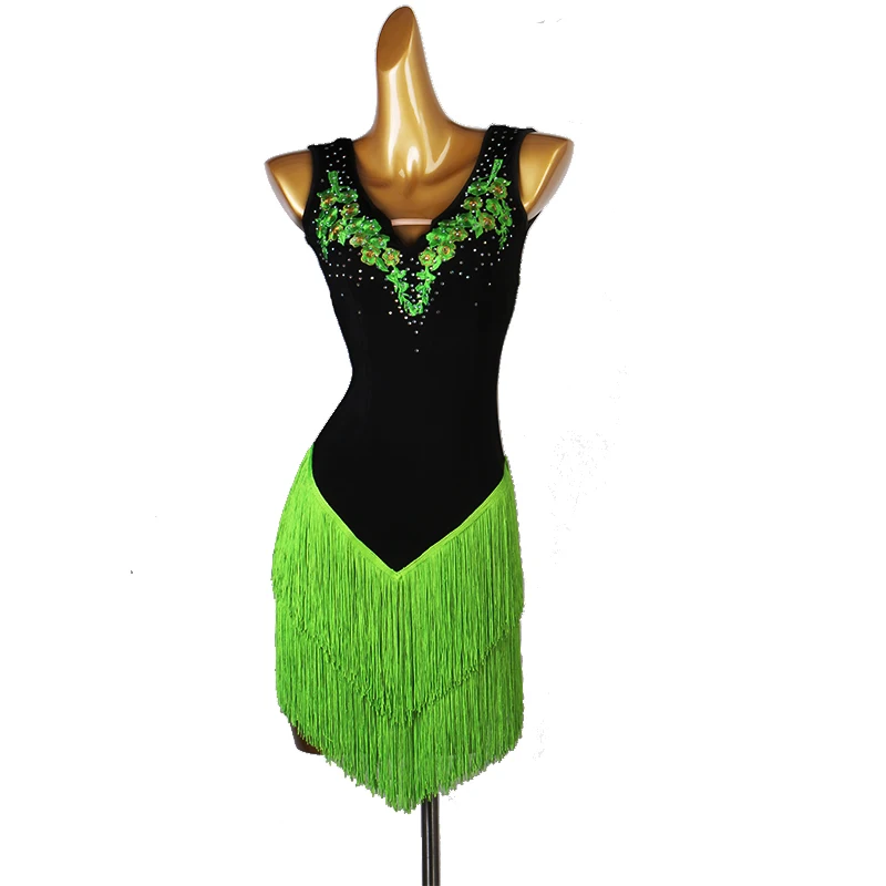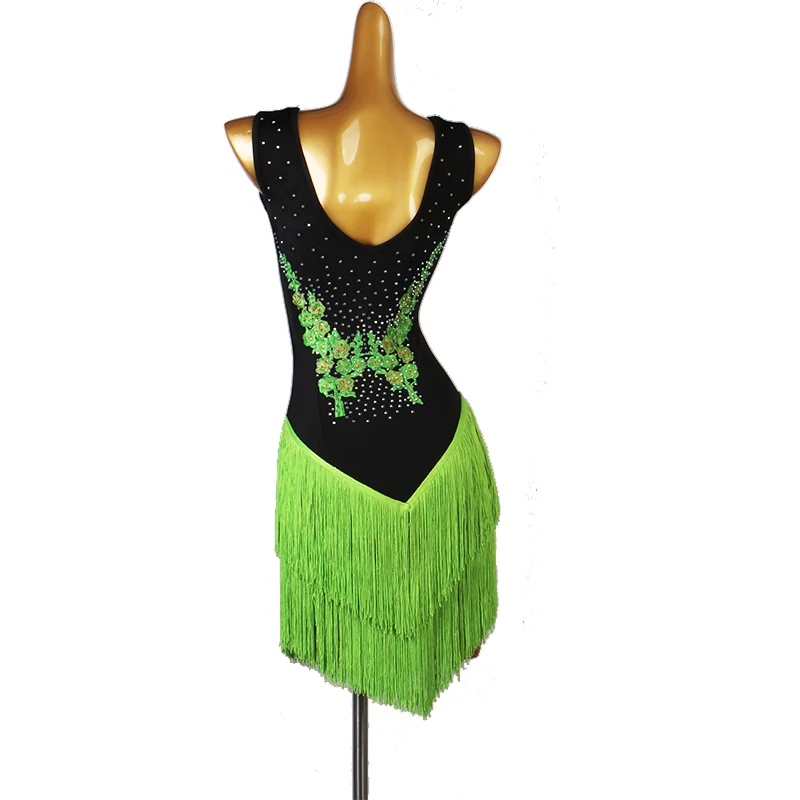 Женское платье для латинских танцев CACARE, танцевальное платье для латинских танцев, платье с бахромой для сальсы, стразы, аппликации с кисточками, D0182