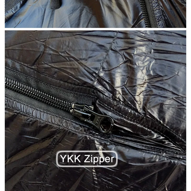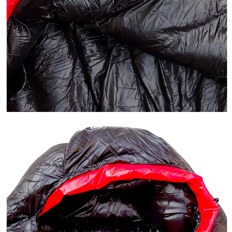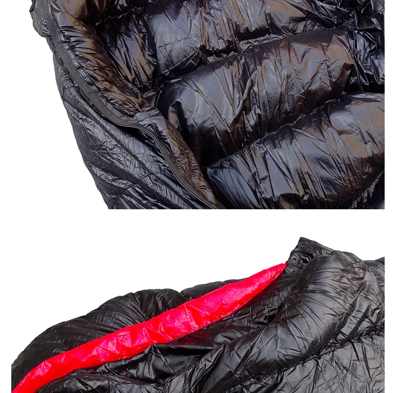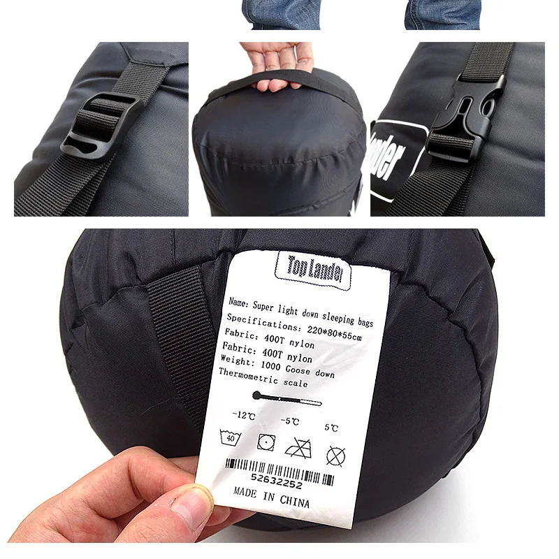 Спальный мешок для мамы с гусиным пухом Внешняя оболочка: 100% нейлон 400T Подкладка: 100% нейлон, 400T Наполнитель: белый гусиный пух 95% Размер: 220x80x55 см/86,6x31,5x21,6 дюйма Вес наполнения: 400 г/600 г/800 г/1000 г Общий вес: 950 г/1150 г/1350 г/1550 г Цвет: черный Посылка список: 1 х спальный мешок 1 х сумка для хранения Особенности 1. Изготовлен из водонепроницаемой, дышащей ткани, светильник-urltra. 2. Двойная застежка-молния, простых в использовании. 3. Больше нет зазубренной молнии с нашими полными анти-пенные слоями на обеих сторонах молнии. 4. Портативный, складной и гибкий.