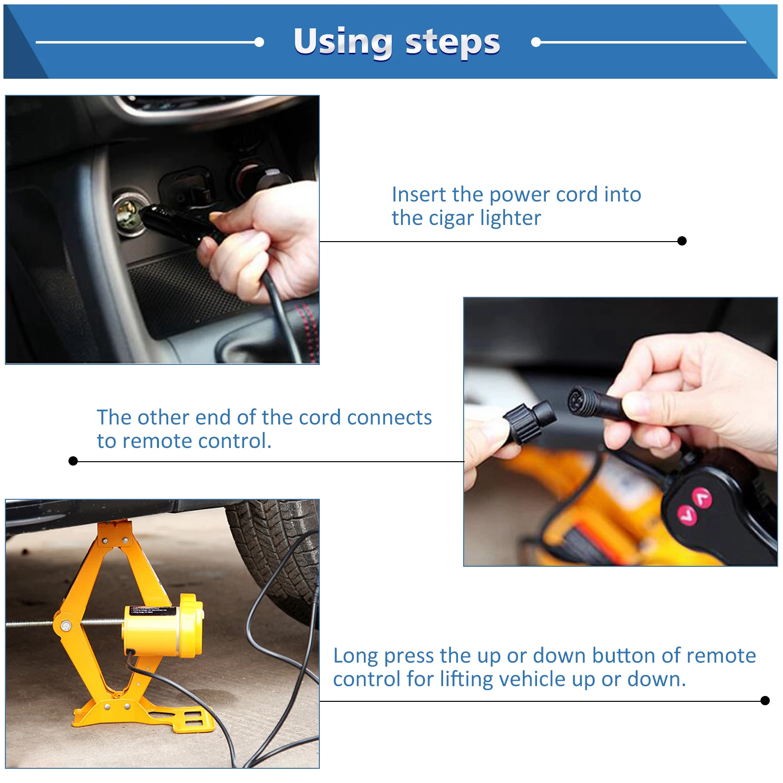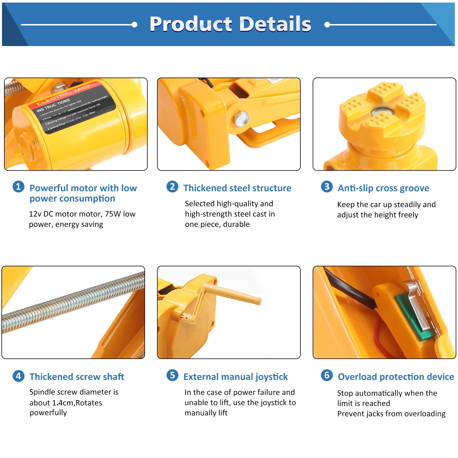 В Автоматический Электрический автомобильный домкрат 12 В идеально подходит для аварийных изменений на дорогах. Этот 2 тонн Домкрат является полностью автоматическим, и он питается от вашего автомобиля прикуривателя.