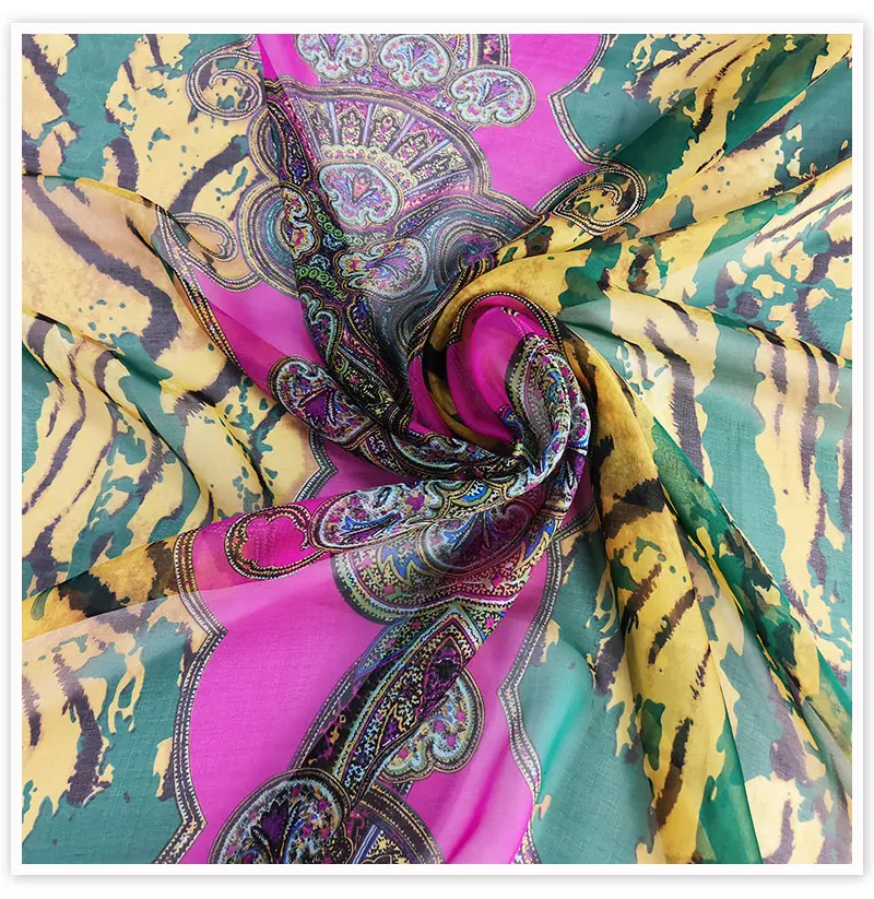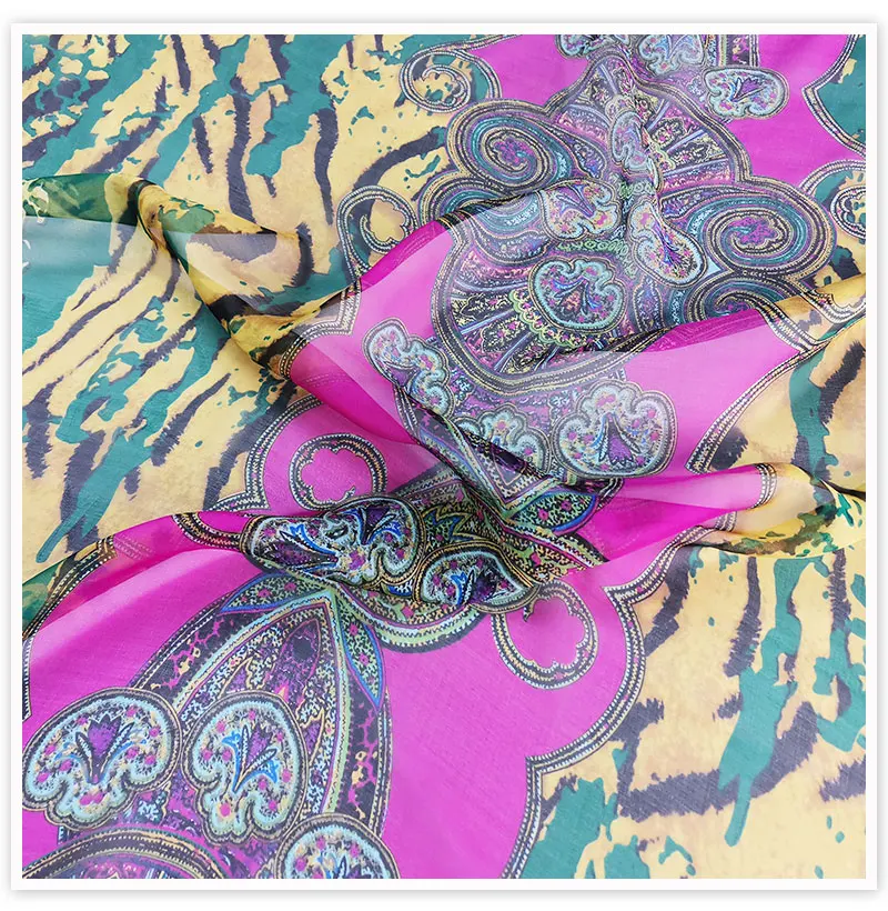 Тип: этнический цветочный принт, 100% шелк, шифоновая ткань для шитья