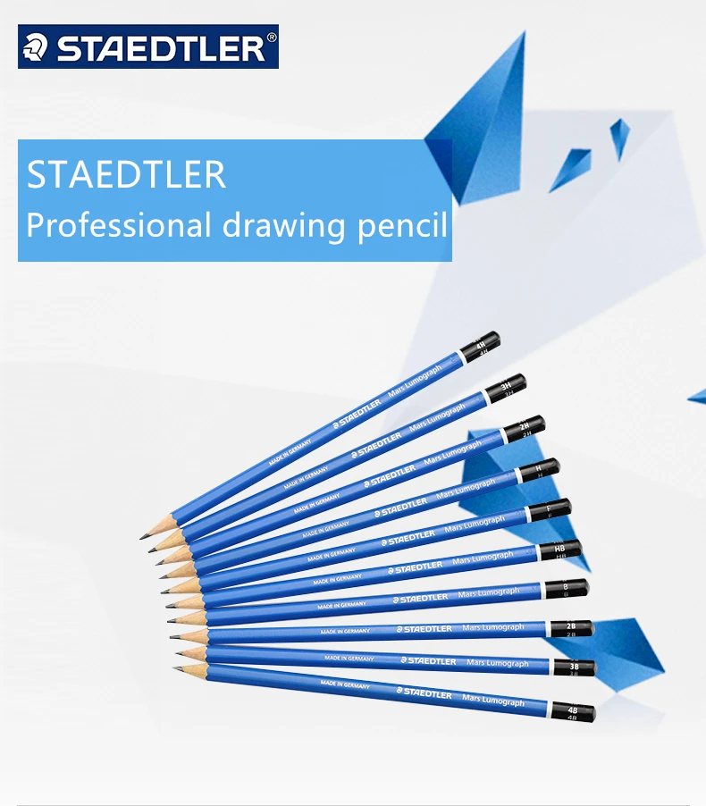 Lumograph-карандаши предназначены для написания, рисования и набросков карандашей на бумаге и матовой пленки для рисования. Линии хорошо размножаются. Супер-скрепленный свинец особенно устойчив к разрыву. Маркировка карандашей легко стирается, а карандаши легко затачивать. Каждый карандаш имеет синий шестигранный бочонок и без ластика.