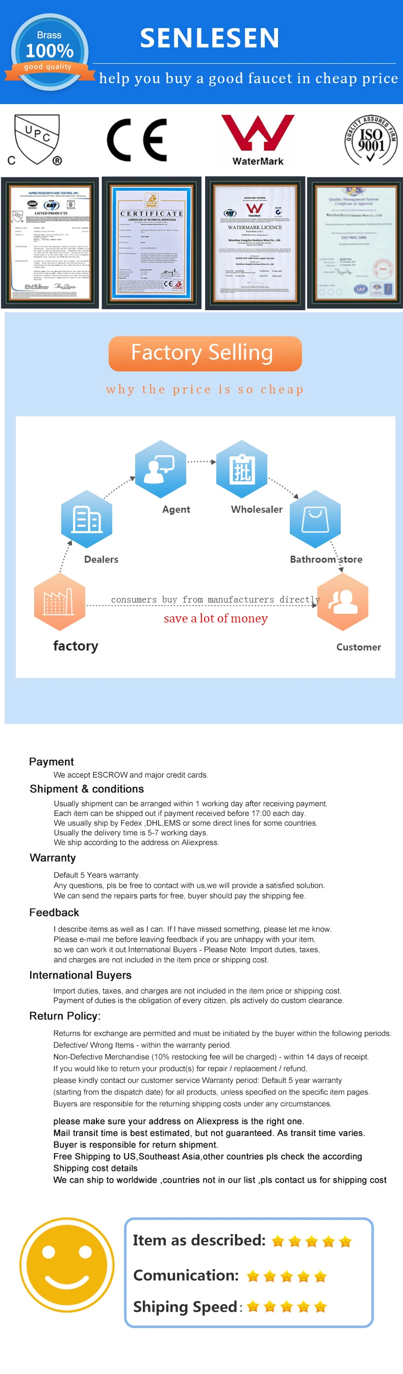 Senlesen 16 дюймов Золотая латунная насадка для душа из толстой нержавеющей сталиUSD 50,73-53,01/Шт.