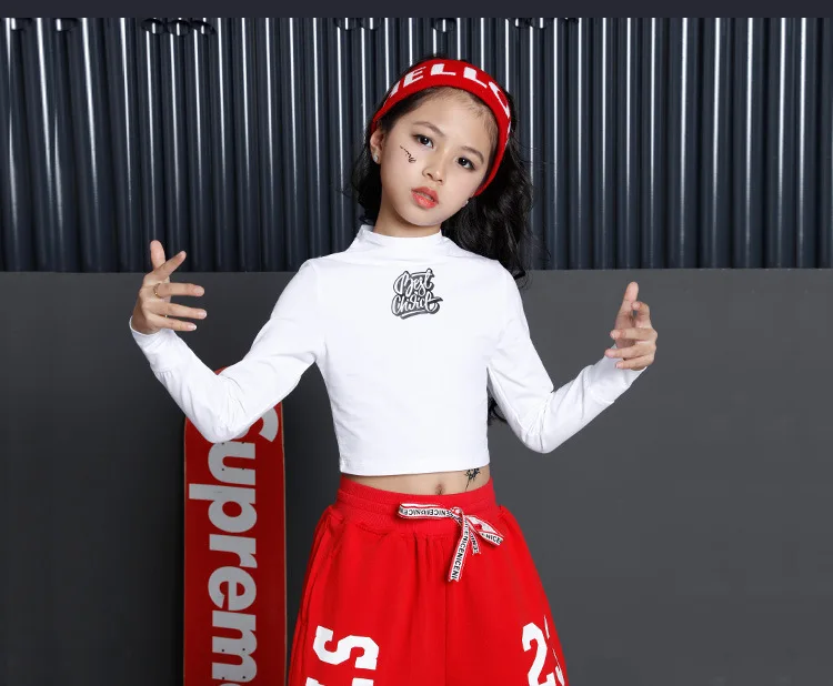 Комплект из 2 предметов для танцев для девочек, черно-белая укороченная футболка для девочек топ с длинными рукавами, штаны, комплекты в стиле хип-хоп Детская уличная одежда