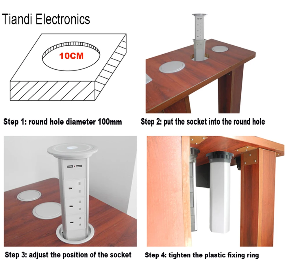 Скрытый дизайн, когда розетка используется, она поднимется и открывается, когда она не используется, она будет опускаться ниже рабочего стола.