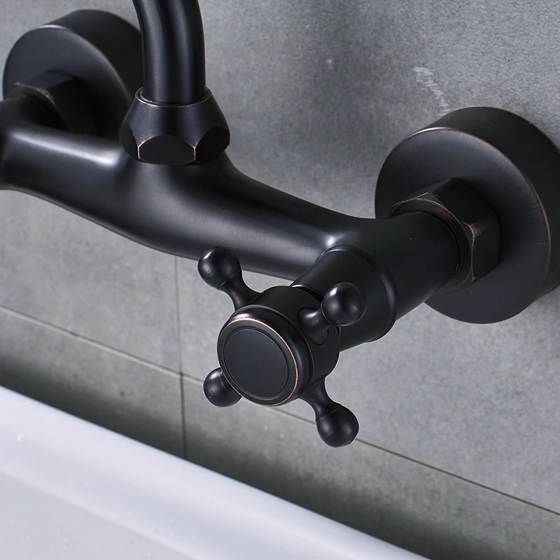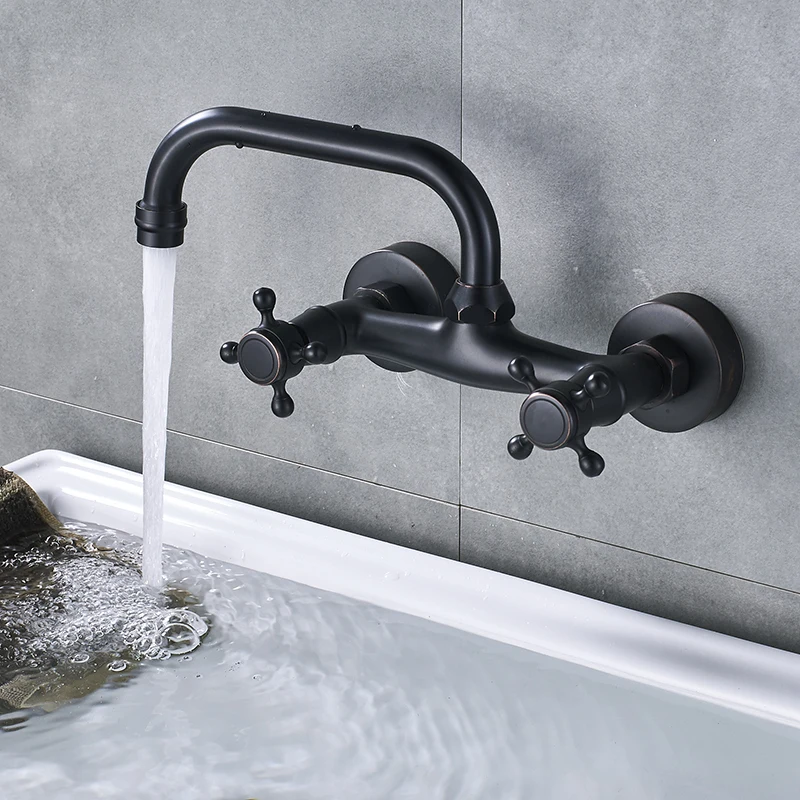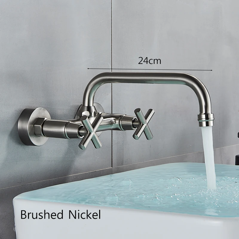 Bathroom Basin Faucet Wall Mounted 360 Degree Rotate Sink Tap Hot and Cold Water Mixer Faucet Brass Kichen Faucet Double Handles