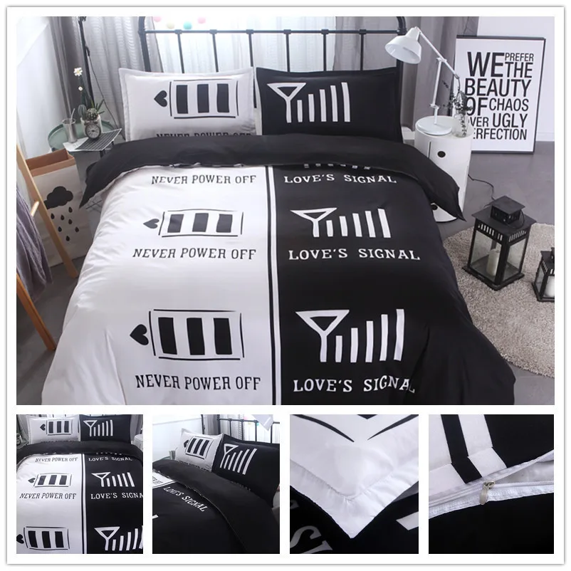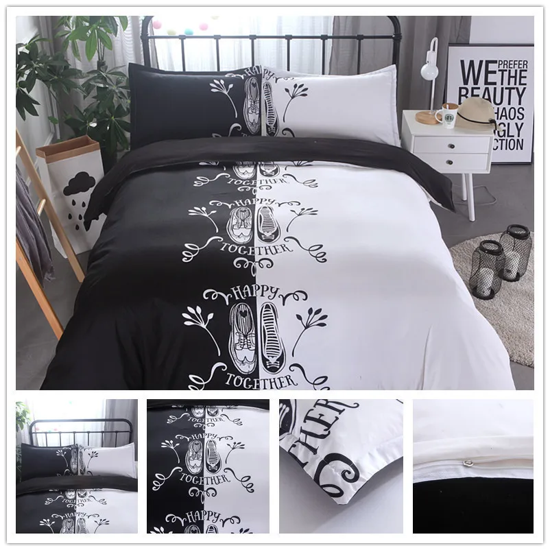 Название: Комплект постельного белья в европейском стиле; Цвет белый, черный; ДвойнойРазмер королевыПостельное белье с принтом пододеяльник набор