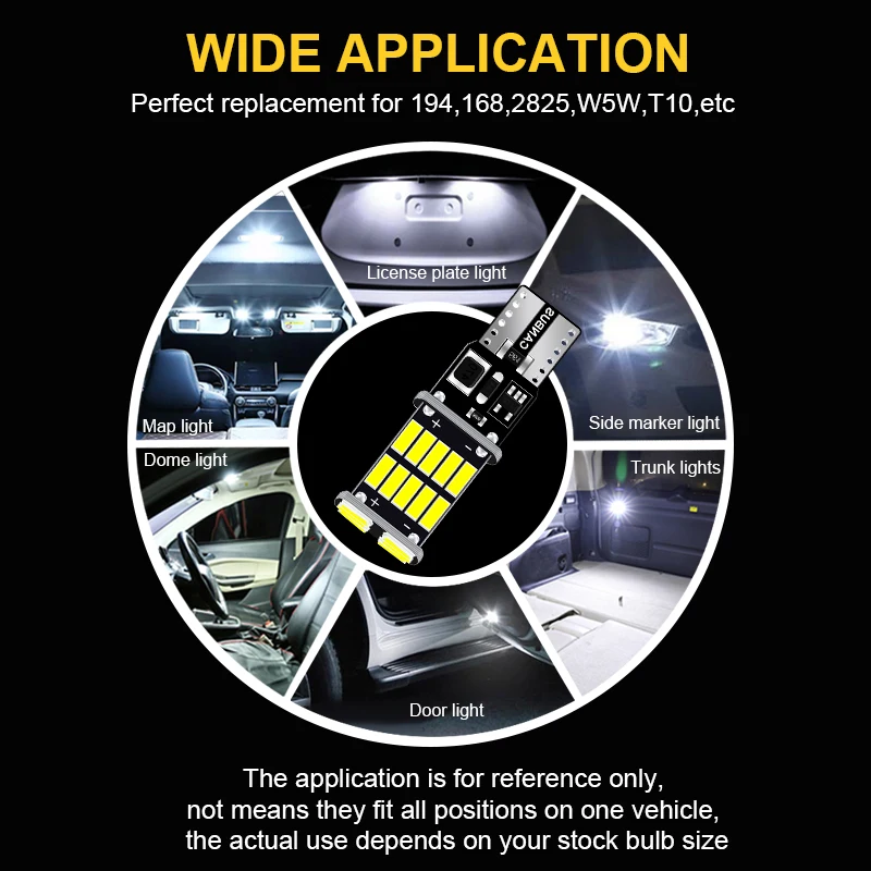 Тип разъема: T10 W5W 194 501Светодиодный чип: 26 * 4014smdСрок службы: 65000 часовРабочее напряжение: 12 ВПростая установка, просто plug & play, прямая замена старых ламп накаливанияФутболки белая футболка печать рисунка на футболке мужские футболки детские футболки: W5W 194 147 152 158 159 161 168 184 192 193 259 280 285 447 464 555 558 585 655 656 657 1250 1251 1252 2450 2652 2921 2825 921 906 579Посылка включает в себя2 шт. T10 W5W лампыПримечаниеПеред покупкой проверьте розетку вашей старой лампы