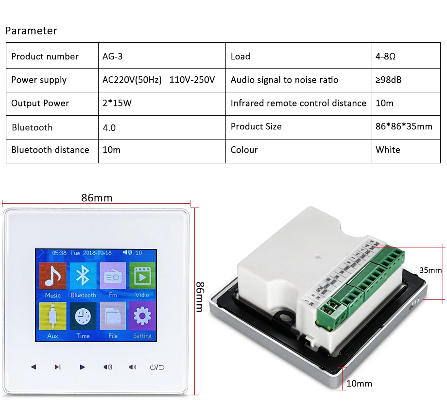 Сертификация:FCC, ce, RoHSНазвание бренда:OupushiНомер модели:AG-3Тип:Мини-усилительКаналы:2,0Место происхождения:Гуандун, КитайФункция:Пульт дистанционного управленияИсточник питания:220V/50HzПрименение:КрытыйВыходная мощность:2*15 ВтBluetooth:4,0Расстояние Bluetooth:10 мОтношение сигнал-шум:≥ 89 дБ