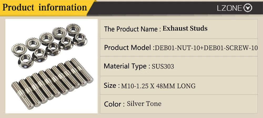 10 шт. 10 мм шпильки для выхлопа из нержавеющей стали и зубчатые гайки M10x1.25 шпильки конверсии высокий наконечник болты винт адаптер Комплект