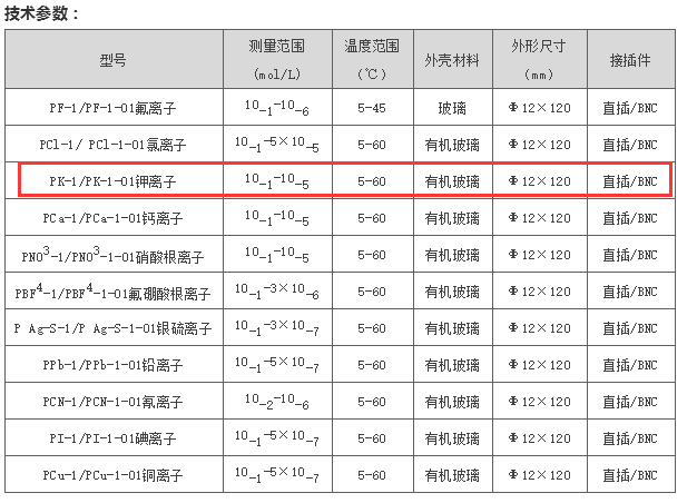 Селективный электрод калия имеет преимущества быстрой реакции, стабильной работы и хорошей селективности. Его можно использовать для проверки содержания калия в грунте, крови, воде, удобрении, цементе, руде и керамике и биттерне в соленом озере.