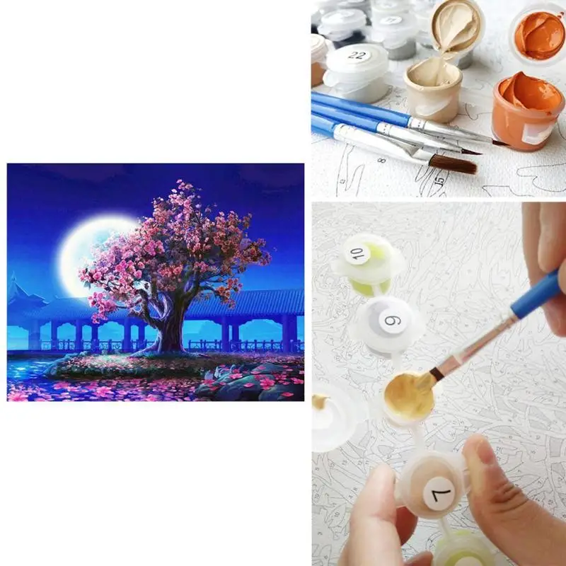 Бескаркасные персиковые флакончики Ночной пейзаж DIY Цифровая живопись маслом по номерам ручная роспись холст живопись настенные картины