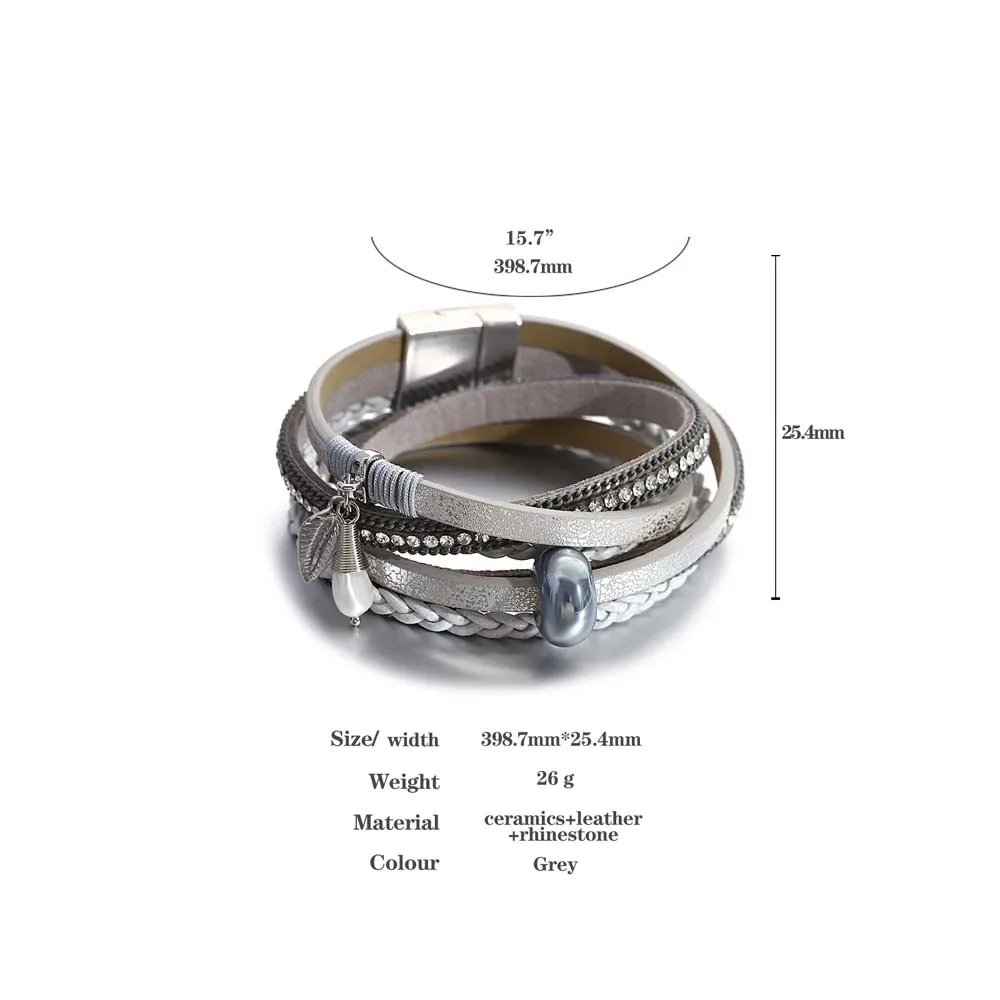 Material:PU Leather/Crystal/Freshwater Pearl/Ceramic Beads