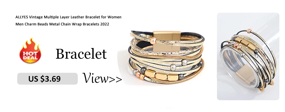 Item:ALLYES Women Leather Bracelet Femme Metal Charm Cystal Bohemian Female Multilayer Wide Wrap Bracelets & Bangles Jewelrye