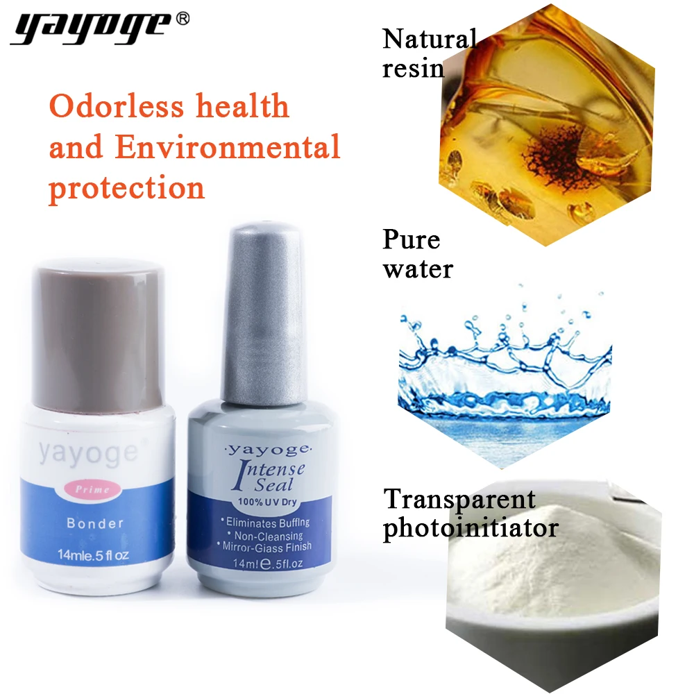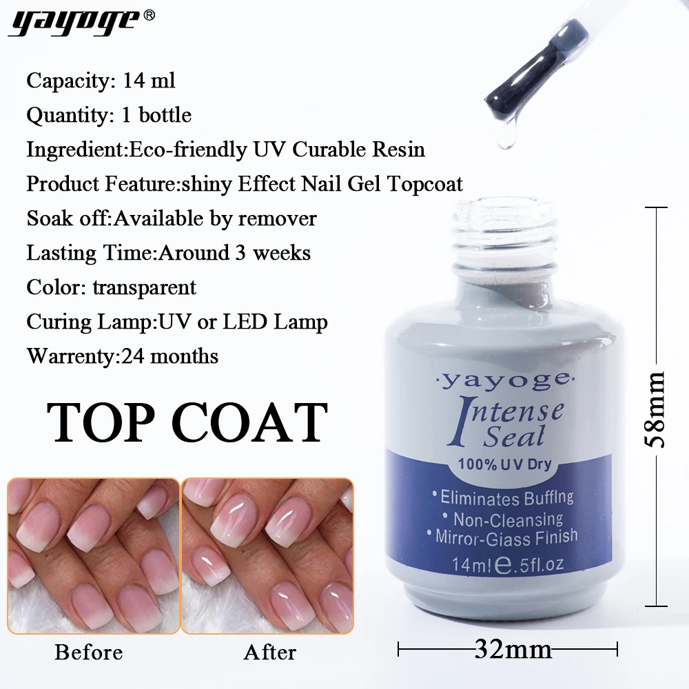 Yayoge 14 мл верхнее покрытие Базовое покрытие Гель-лак UV Led грунтовка для ногтей Бондер и интенсивное уплотнение Быстросохнущий Гель-лак База для дизайна ногтей