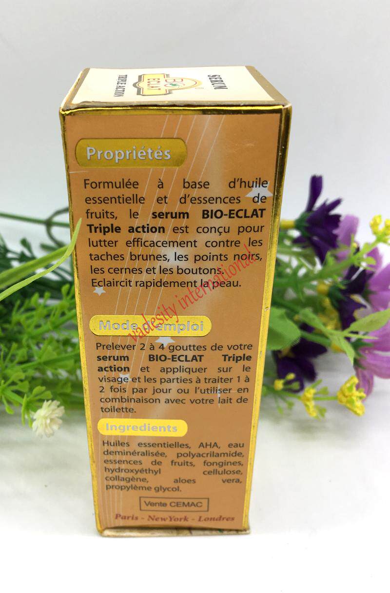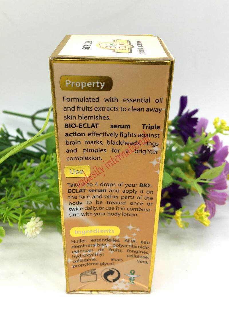 Содержит эфирное масло и Фруктовые экстракты для очистки кожных пятен. Био Eclat сыворотка тройного действия эффективно борется с мозговыми отметками, угреми, кольцами и прыщами для более яркого цвета лица.