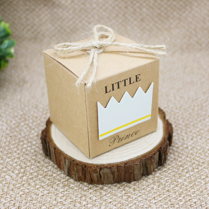 Этот подарок на вечеринку в честь рождения ребенка коробки украшены голубой короной, золотой металлической деталью и украшены натуральный шпагат бантом. Ваши гости будут наслаждаться памятью о вашем особом случае в течение нескольких дней.
