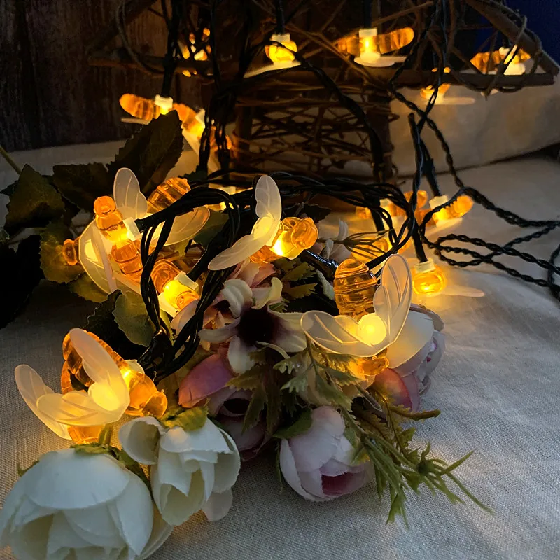 LED String Light Solar Bee Garland Outdoor Garden Decoration Lights Fairy For Yard Room Rooftop Christmas Tree Decor | Лампы и