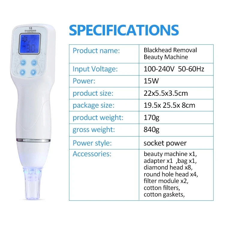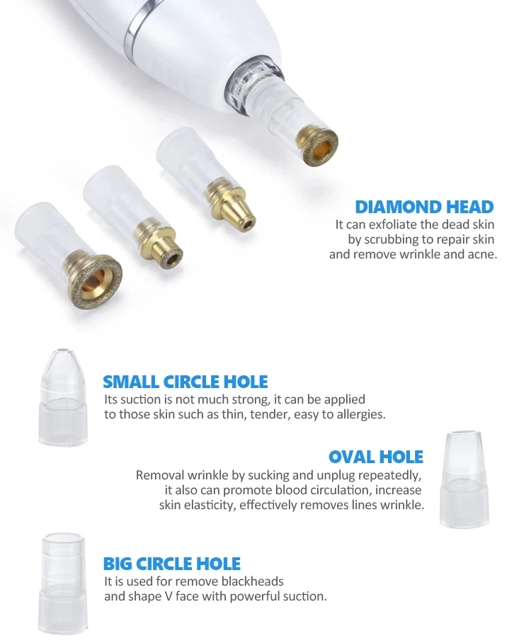 Беспроводной пор вакуумное удаление угрей, прыщей акне удаление вакуумный всасывающий инструмент, Алмазная дермабразия для лица машина с 8 наконечниками