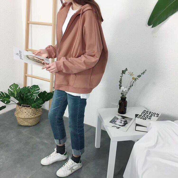 Осенний женский новый толстый махровый кардиган на молнии, хлопковая верхняя одежда с капюшоном, свободный свитер, однотонный Повседневный женский свитер с капюшоном, MZ2787