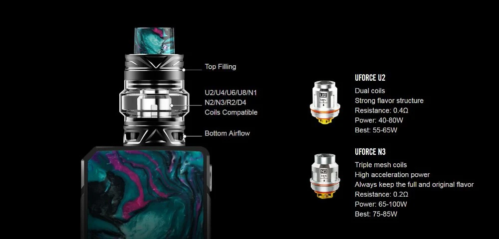 Введение продукта: Набор VOOPOO Drag 2-это обновленная версия оригинального набора VOOPOO Drag, который состоит из модуля Drag 2 box и совершенно нового бака Uforce T2. В дополнение к высокому техническому дизайну, который очень обтекается с красочной панелью из смолы с одной стороны, мод также выглядит современным. На лицевой стороне управления вы увидите кристально чистый oled-дисплей с меню, которое отображает текущий уровень заряда батареи, режим, сопротивление или напряжение и мощность. Самое большое преимущество заключается в том, что Мод изготовлен с микросхемой US Gene Fun 32 bit от крупнейшего в мире поставщика чипов eCig. Питание от двух аккумуляторов 18650, оно может гореть с выходом до 130 Вт с атомайзером, которые имеют сопротивление 0,05 Ом и до 157 Вт, если сопротивление атомайзера составляет 0,10 Ом или выше. Вы также можете изготовить на заказ Ваши персональные катушки охлаждения значение и коэффициент провода для достижения лучшего парения. В сочетании с новейшим баком Uforce T2, он производит сильное облако и непревзойденный аромат! Параметры: Размер: 88,3*51*26,5 мм Материал: нержавеющая сталь + смола Диапазон мощности: 5-177 Вт Батарея: 2*18650 батареи (не входят в комплект) Рабочее напряжение: 6,4-8,5 в Рабочий ток: 1-40A Диапазон выходного напряжения: 0-7,5 В Диапазон сопротивления: 0,05-3,0 (VW); 0,05-1,5 (TC) Нить: 510 Набор пакетиков: 1 мод VOOPOO Drag 2 (без батареи) 1 x бак Uforce T2 Кабель для зарядки Micro USB-1 шт. 1 x Руководство пользователя