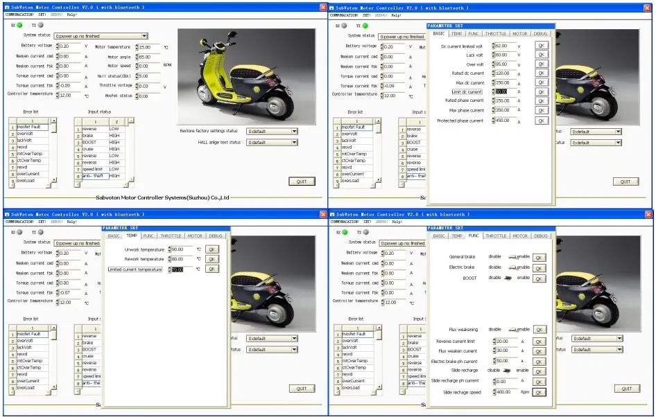 MQCON(Sabvoton) SVMC/SSC программируемый синусоидальный контроллер двигателя работает с высокой эффективностью, меньшим уровнем шума и низким энергопотреблением, что делает ваши электромобили или электрические мотоциклы более удобными и удобными в управлении. Наш Разработанный дружественный интерфейс программируемого контроллера двигателя позволяет вам устанавливать параметры, проводить испытания и получать диагностическую информацию легко и быстро.