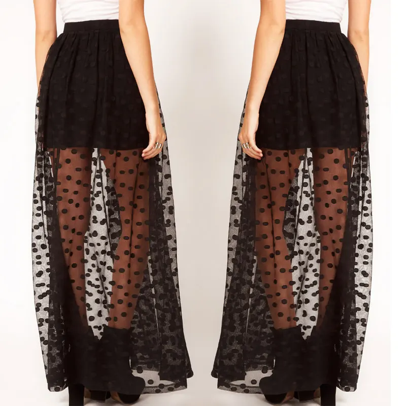 /1 кружевная Готическая длинная юбка макси в горошек
