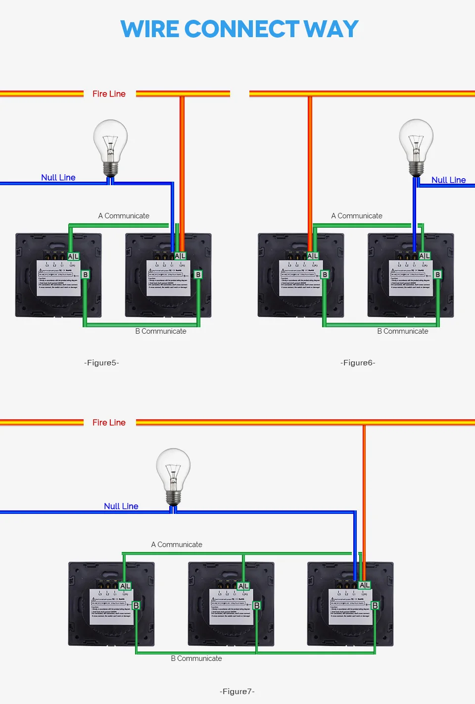 3. Подключение A и B линии, не пересекаются (если крест, сенсорный выключатель не может работать в норме или повреждения), длина соединения линии A.B не должна превышать 30 м;