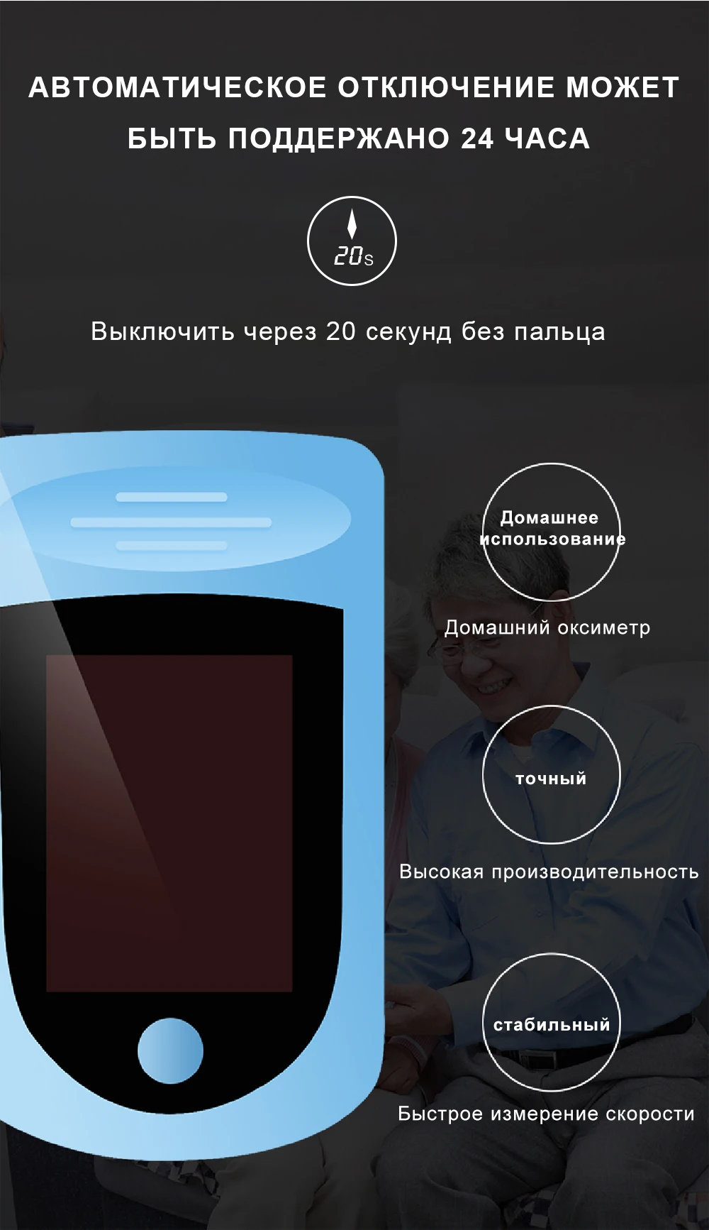 Пульсовой оксиметр является доступным и точным способом проверки частоты пульса и уровня насыщения крови кислородом. Саморегулирующийся зажим для пальца плюс простая конструкция с одной кнопкой облегчают эксплуатацию. Небольшой портативный размер позволяет легко обрабатывать и переносить. Подходит для ежедневного использования, измерьте свое здоровье в любое время.
