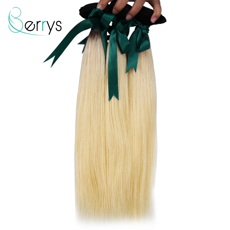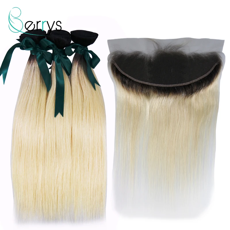 Berryshair 10A бразильские девственные человеческие волосы Омбре светлые волосы 3 шт./лот с 13x4 кружевной фронтальной 1B/613 цвет прямые волосы