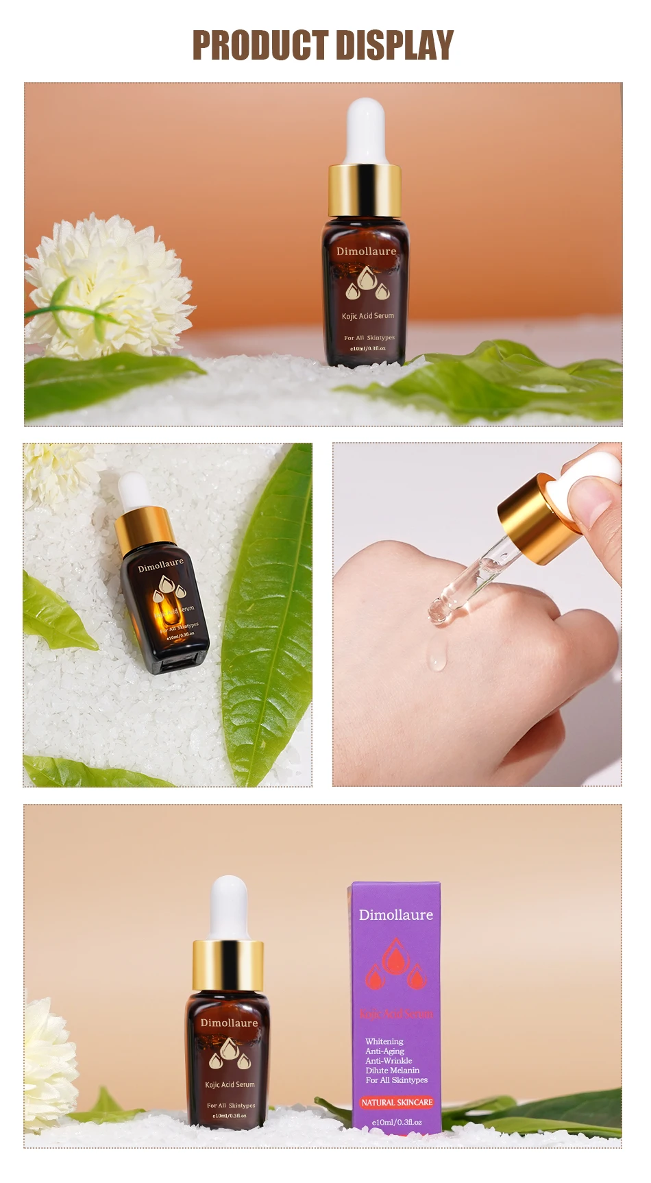 Dimollaure Kojic кислота Улитка Витамин С Гиалуроновая кислота Сыворотка увлажняющая отбеливающая против старения удаление пигмента меланин уход за лицом